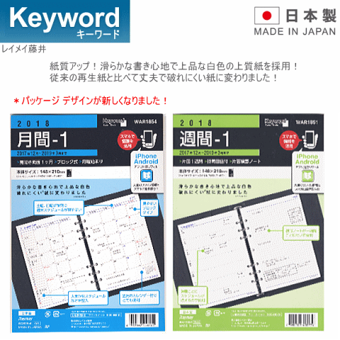 キーワードシステム手帳用 A5サイズリフィル 2020年版スケジュール 商品名 Keyward キーワードリフィル 2020年月間-2 品番 WAR2055(旧品番:WAR1955) サイズ 横148×縦210mm (A5サイズ、デスクサイズ 6穴) 入数 16ヶ月分 2019年12月〜2021年3月 仕様 見開き両面1ヶ月リスト式 *iPhone対応アプリ「リフィルストッカー」対応品 メーカー 株式会社 レイメイ藤井 ※A5サイズのリフィルですサイズ違いには十分ご注意ください。